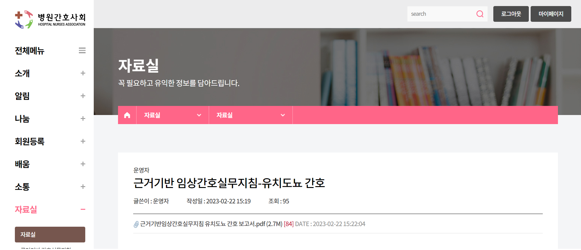 한국근거기반 간호학회는 근거기반 임상간호실무지침-유치도뇨 간...